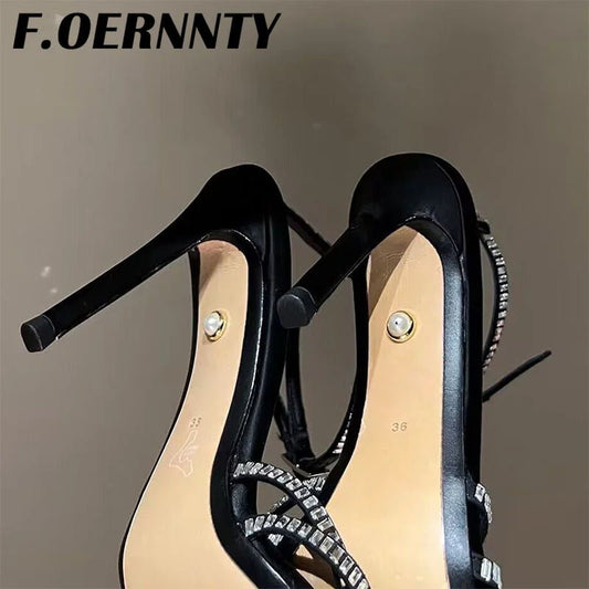 Summer New Rhinestone Closed Toe Runway Sandals Women Weave Hollow Stiletto Sandals Sexy Ankle Strap Crystal Sandals Women